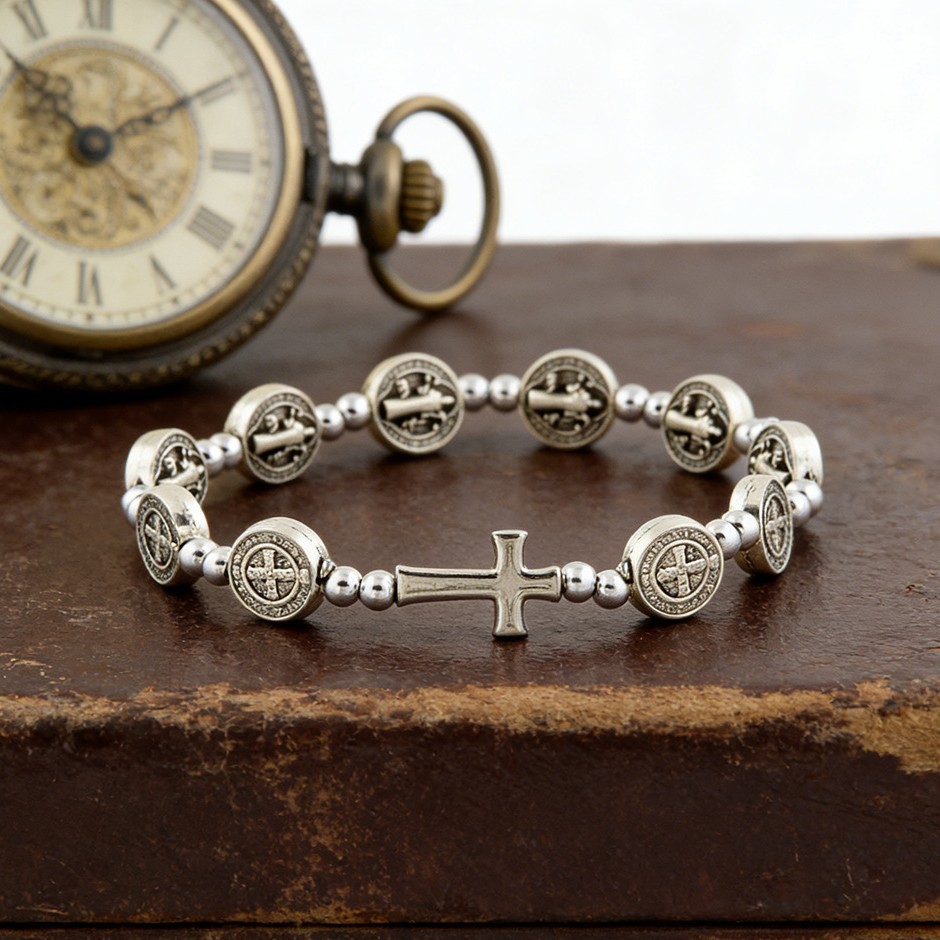 圣本笃十字架手链金属串珠手环饰品手饰