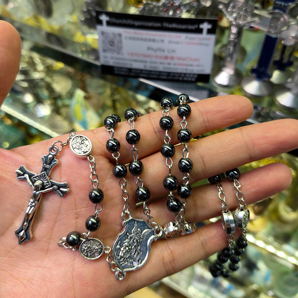 6mm珍珠念珠项链AW十字架西班牙ASTURIAS