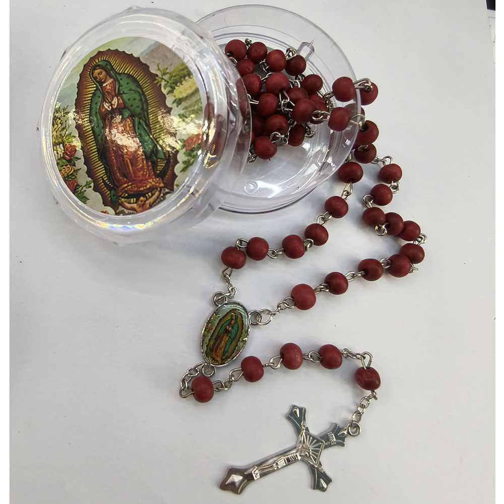 三色玫瑰香味木珠项链瓜德卢佩圣母十字架念珠项链