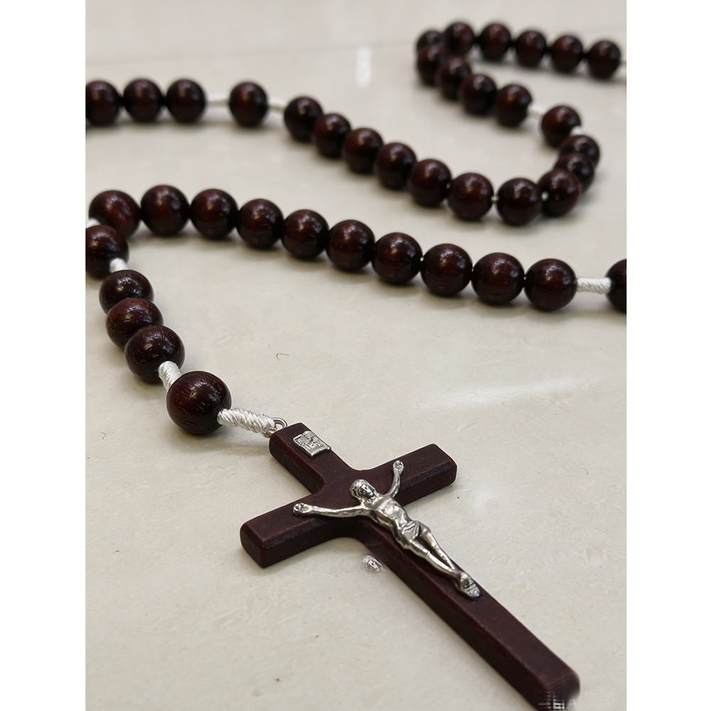 订做生产中 8mm松木珠连接十字架念珠项链饰品