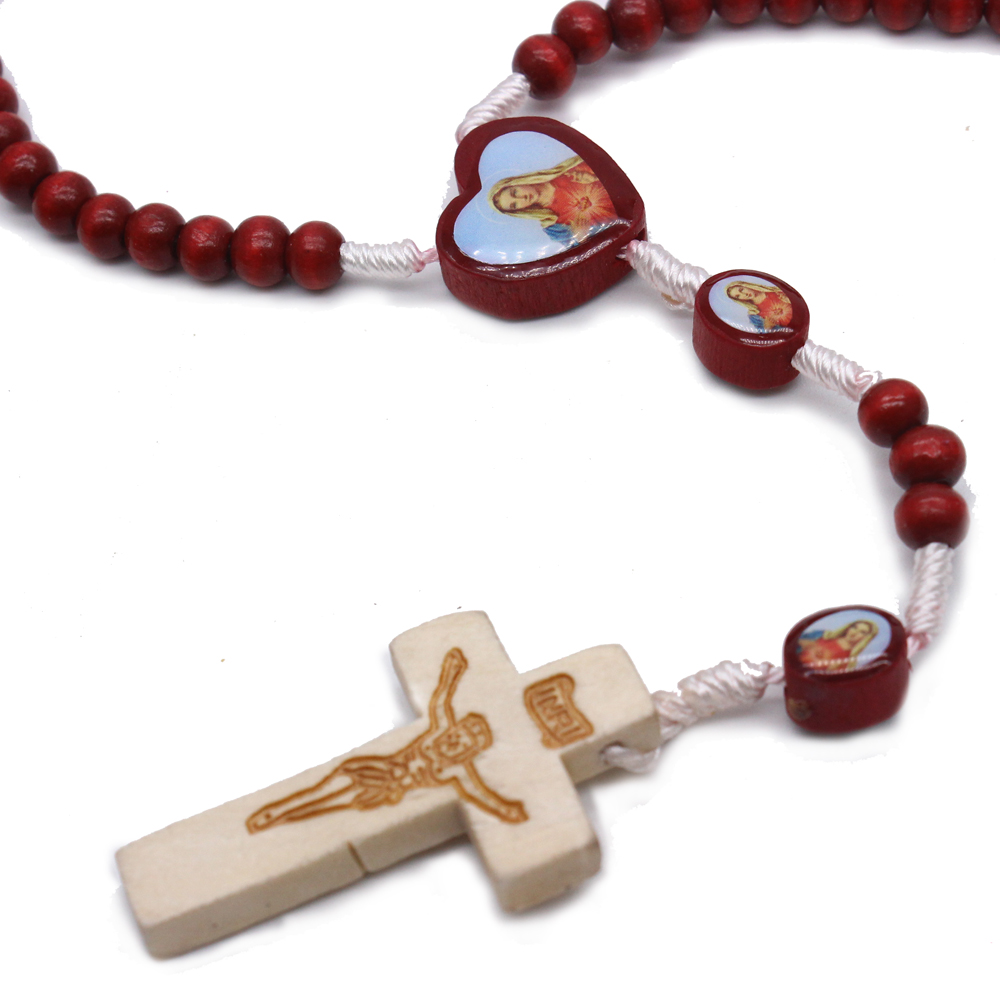 三色玫瑰香味木珠项链瓜德卢佩圣母十字架念珠项链