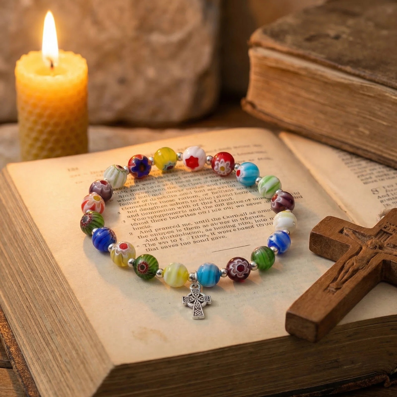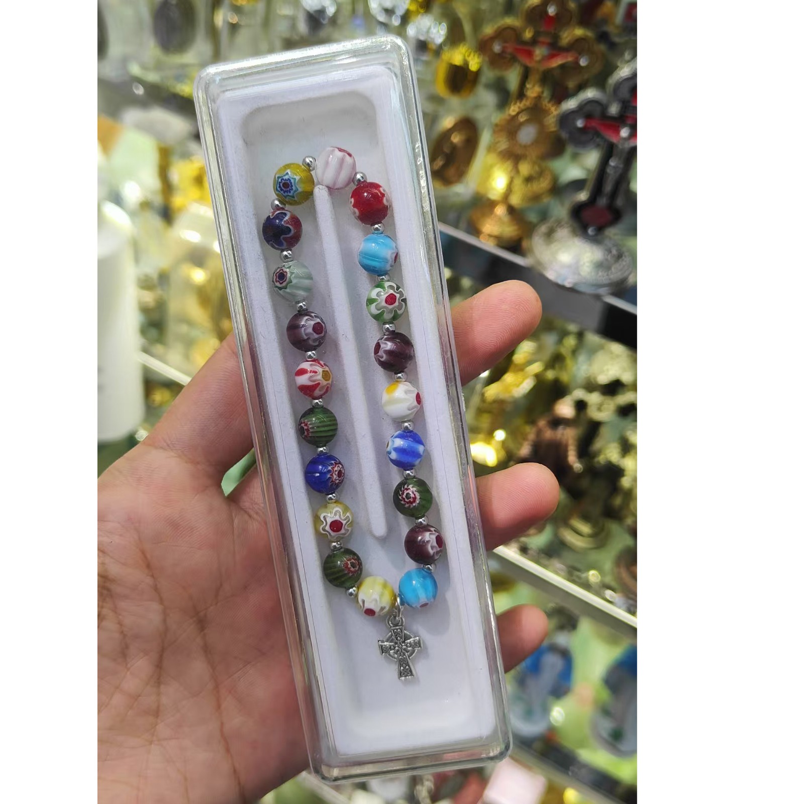 (不带盒)高档千花琉璃珠十字架手链手工弹力绳手串