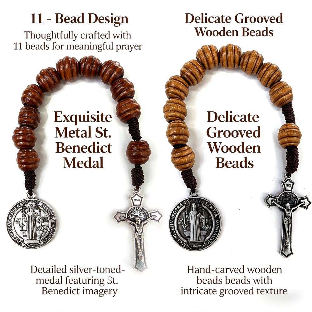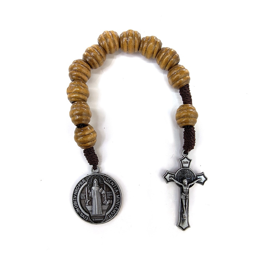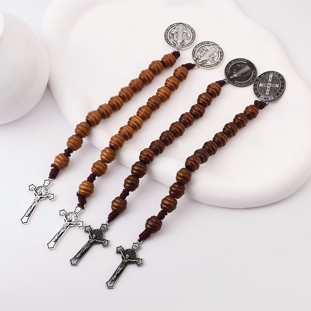 (古锡)One Decade十字架圣本奖章口袋念珠棕色木珠手串
