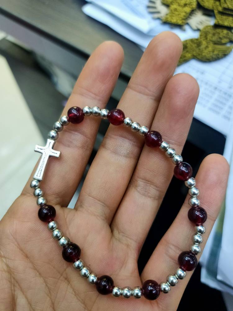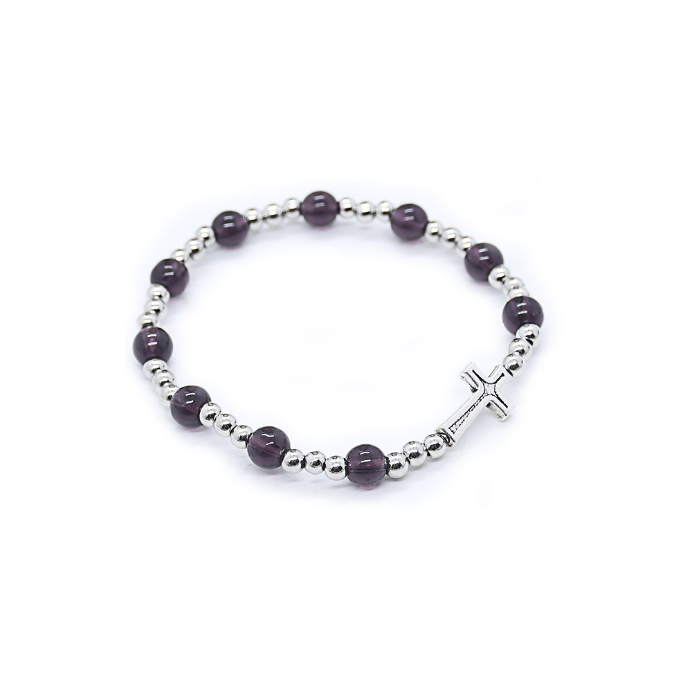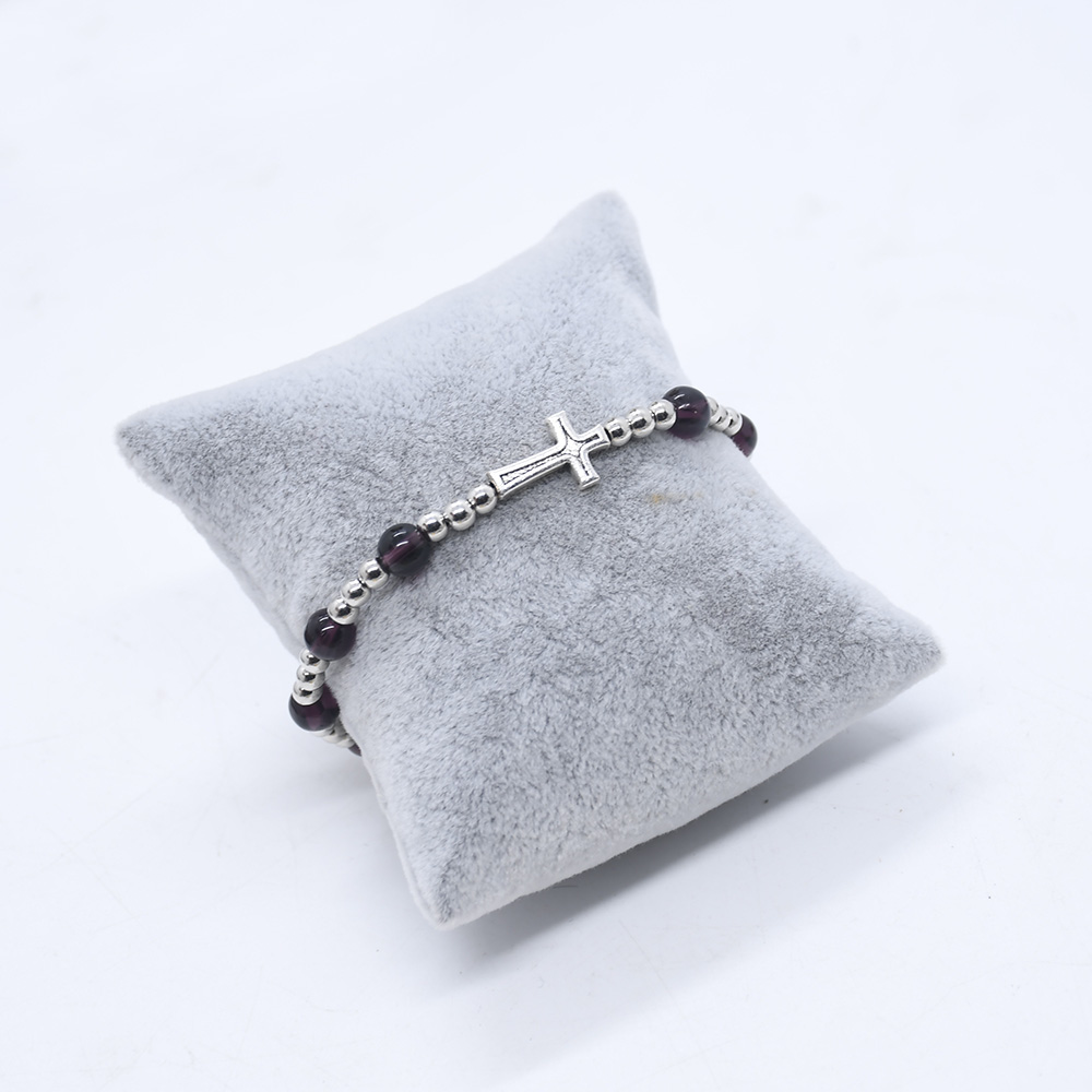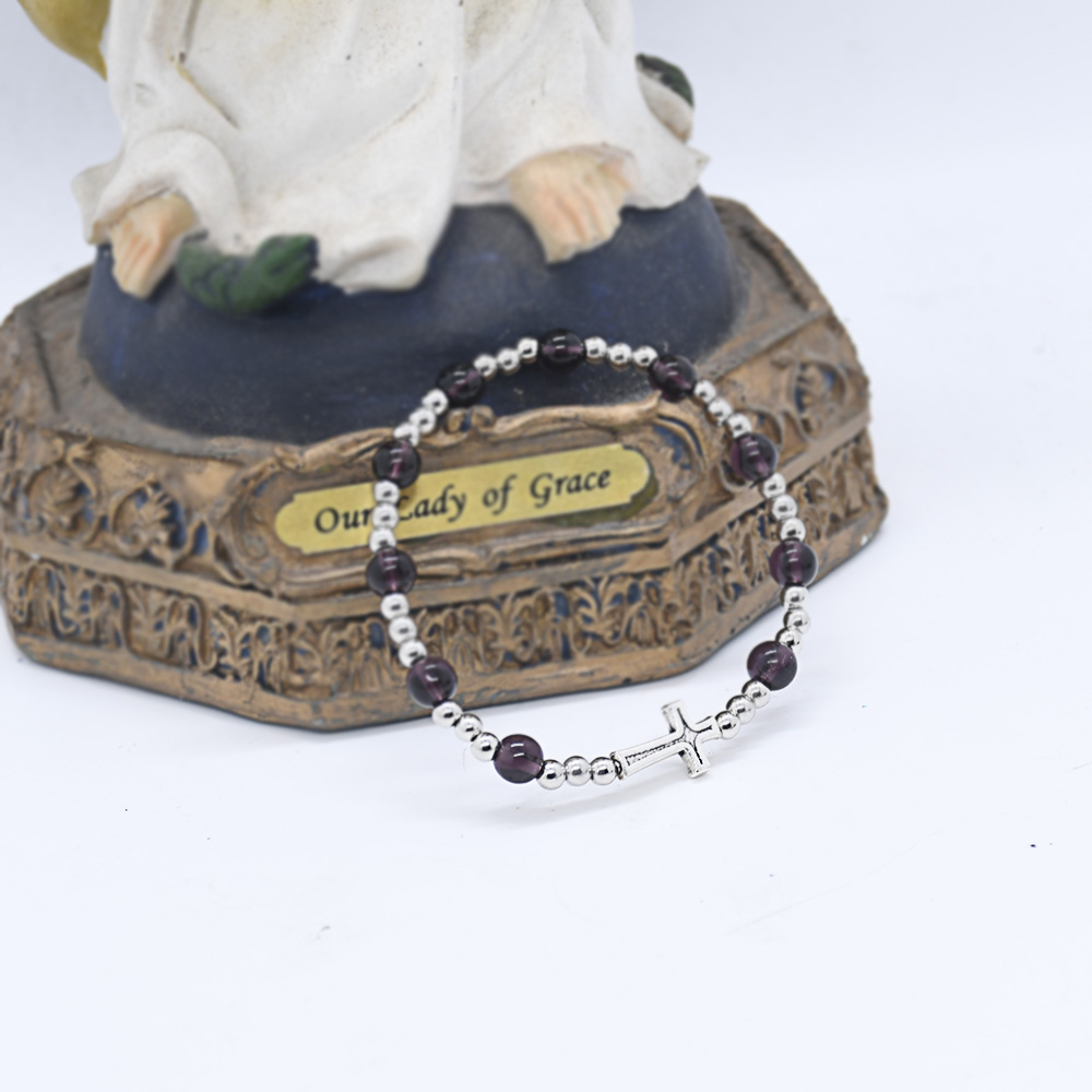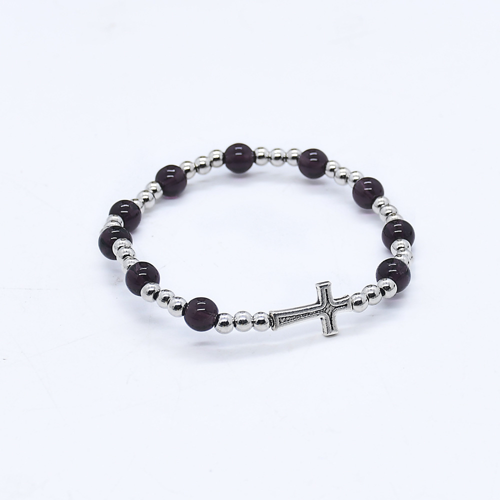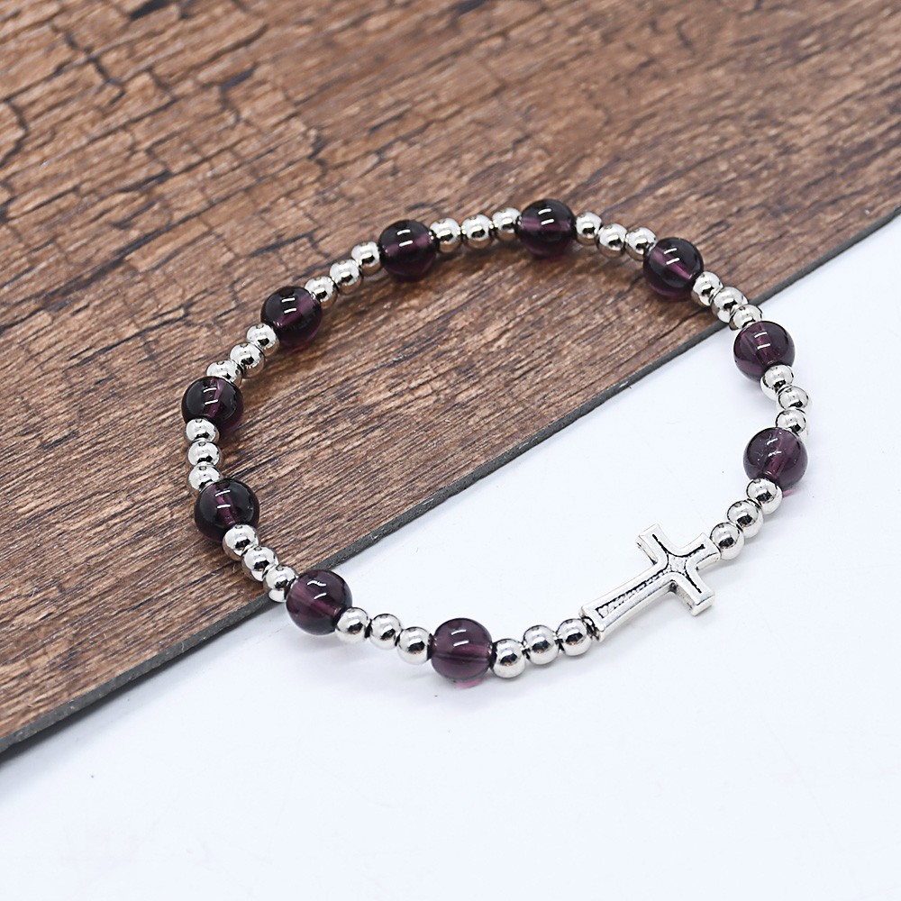 跨境串珠紫水晶手串十字架念珠手链欧美简约弹力绳