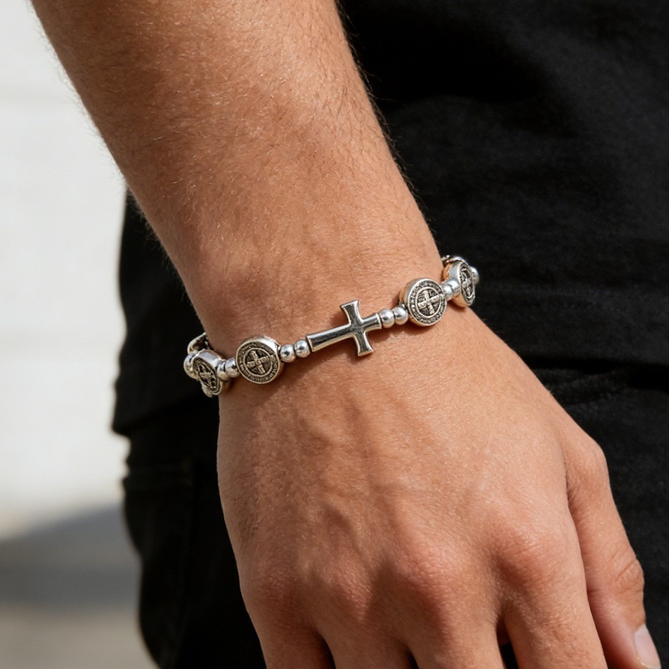 圣本笃十字架手链金属串珠手环饰品手饰