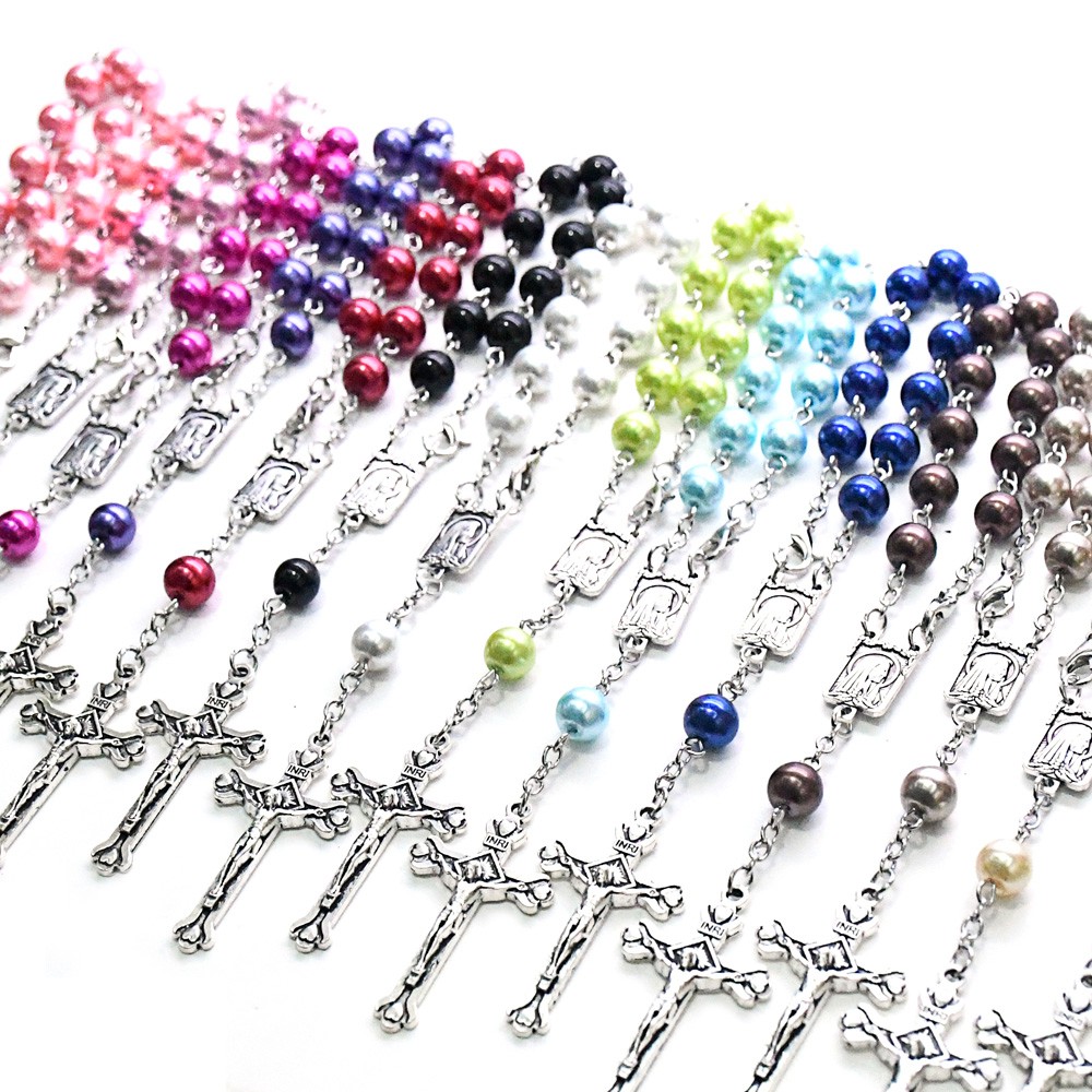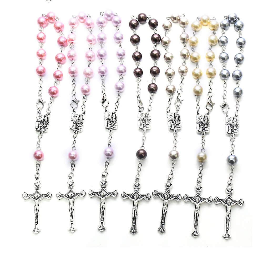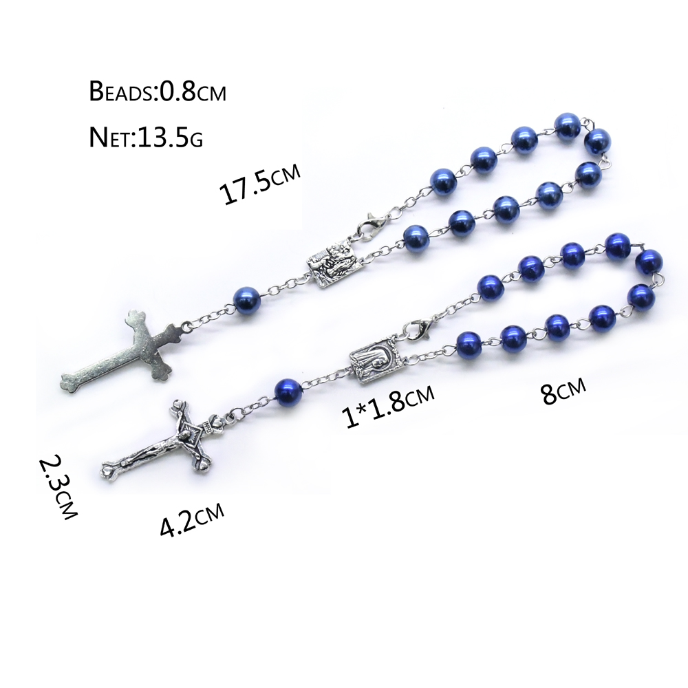 8mm多色珍珠念珠手链饰品外贸十字架手串手环 11颗prayer 手链