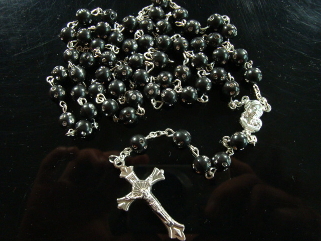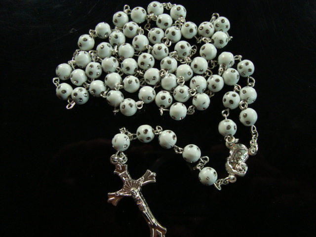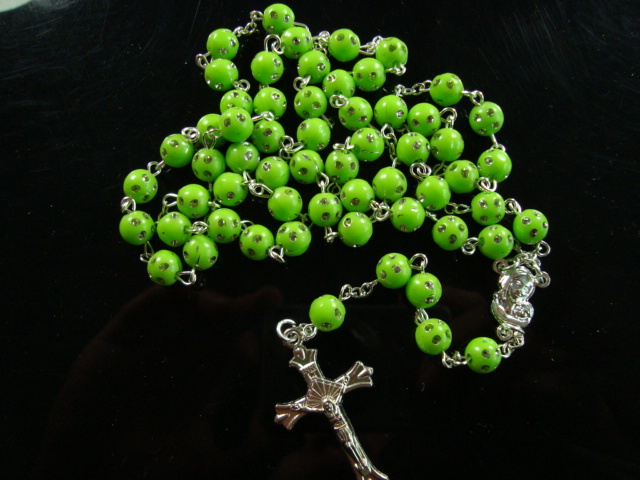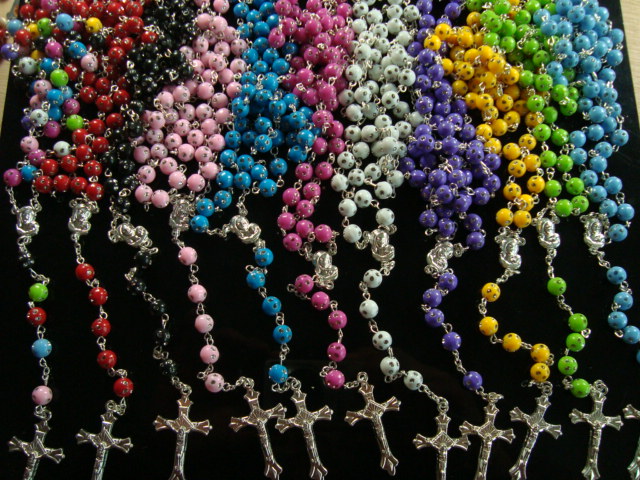 外贸出口8mm多色塑料珠念珠十字架项链礼品赠品毛衣链