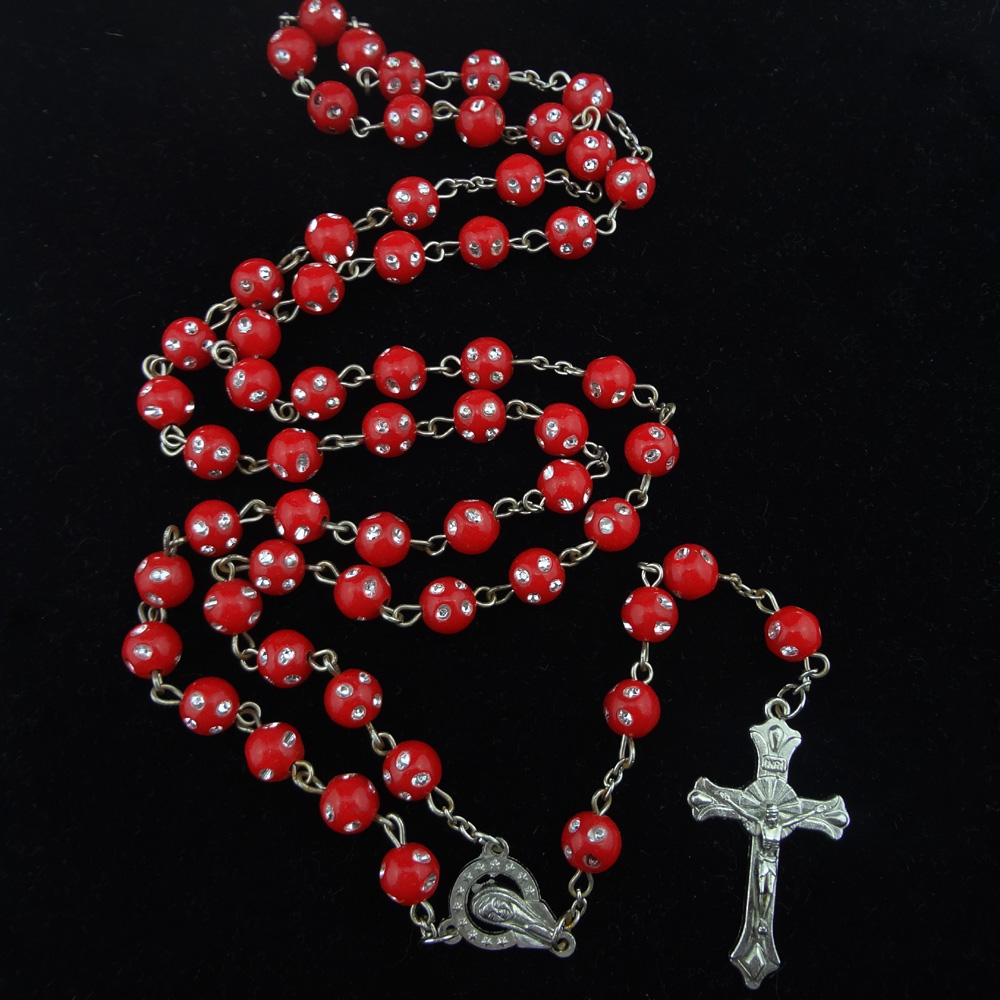念珠饰品批发 十字架项链塑料玫瑰珠项链