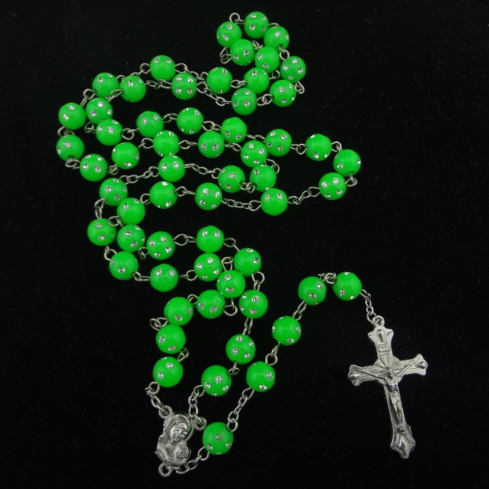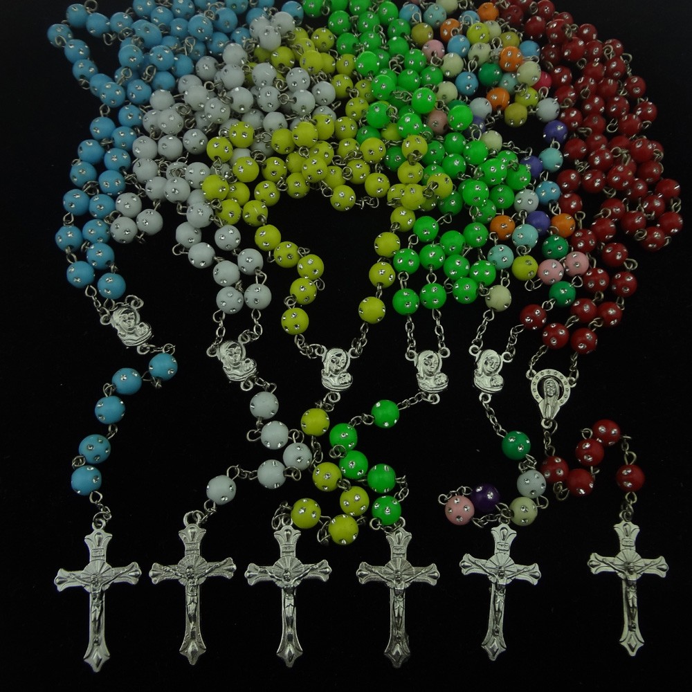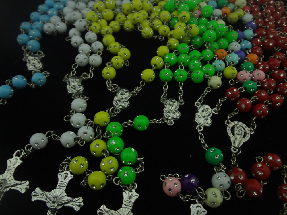 夜光十字架项链连线珠 塑料发光念珠项链(颜色随机,按12条倍数拍)