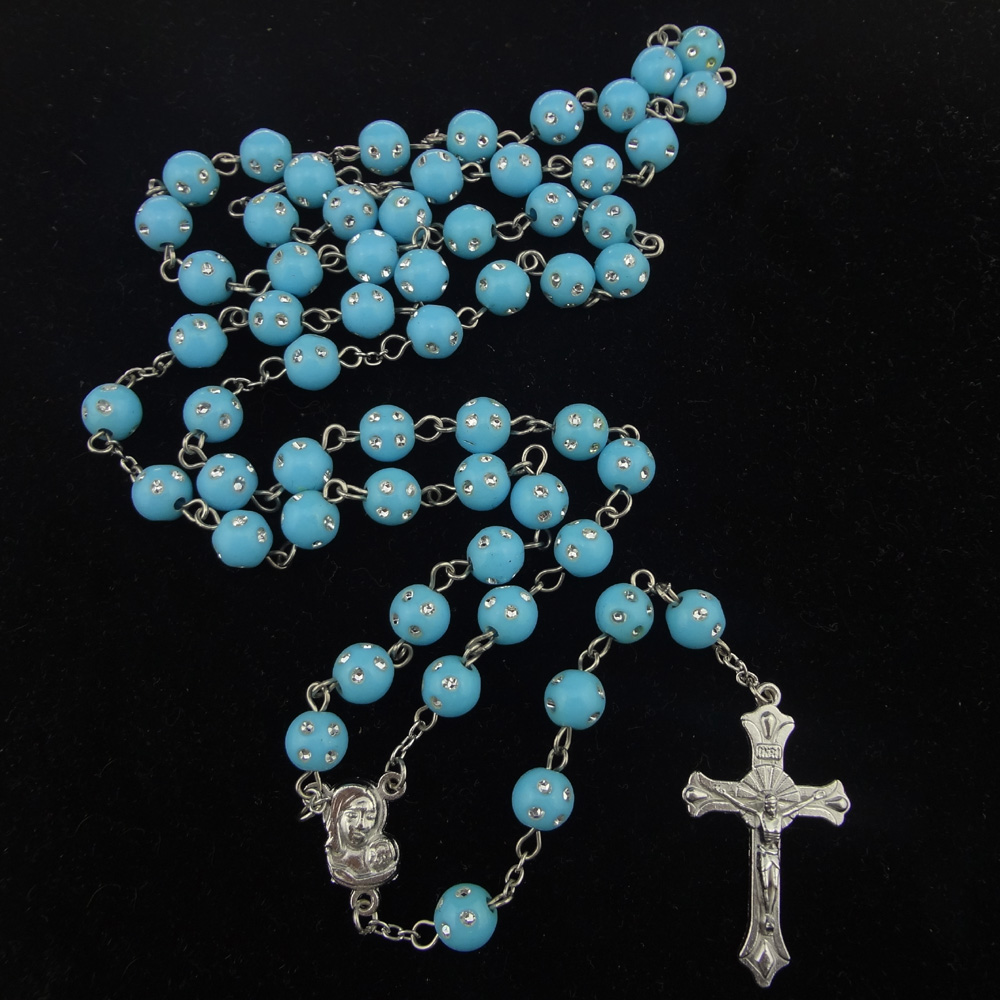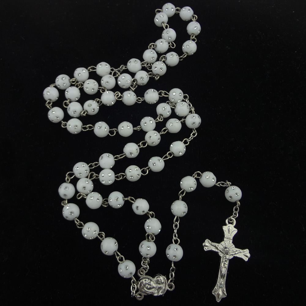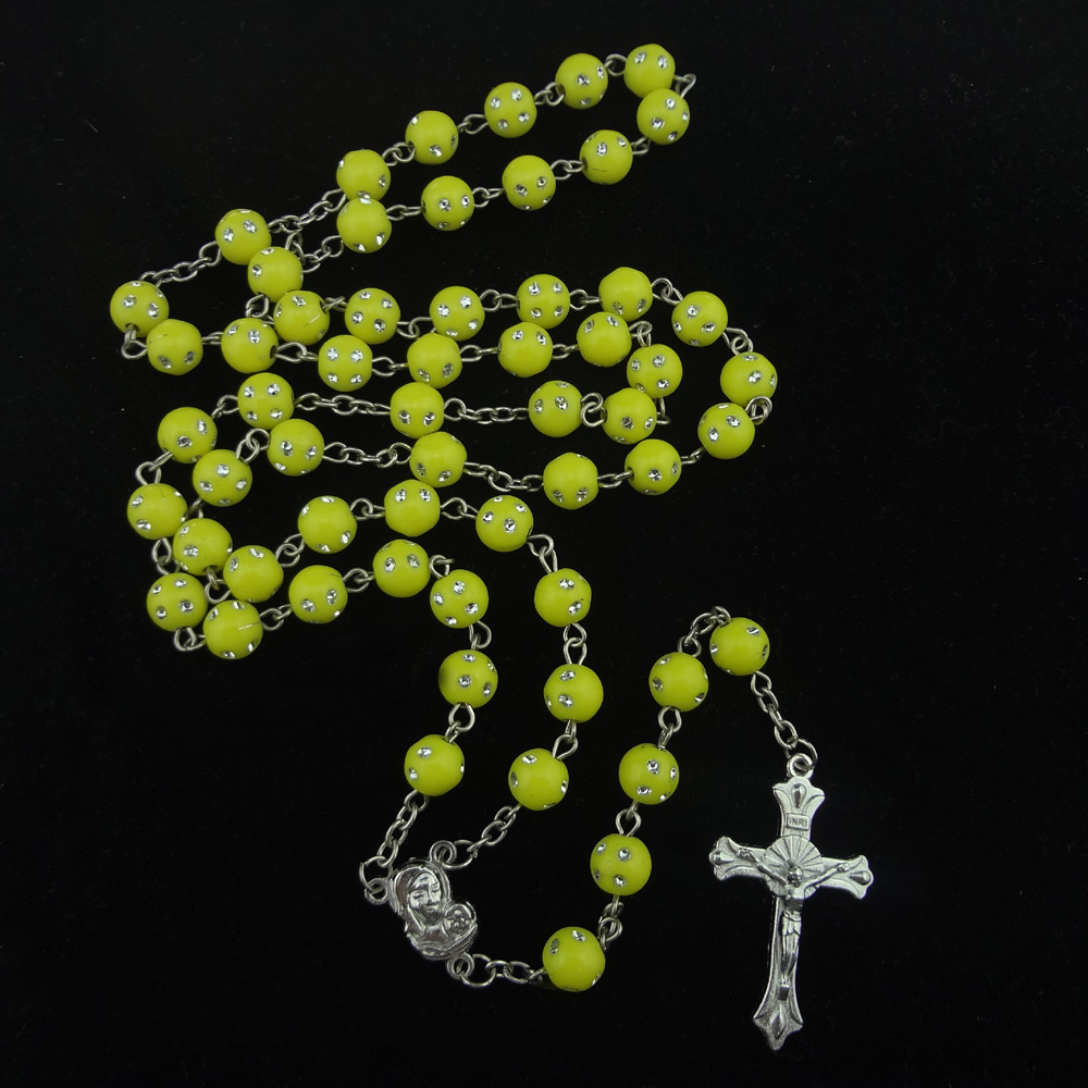 跨境电商点点塑料珠8MM念珠项链十字架外贸