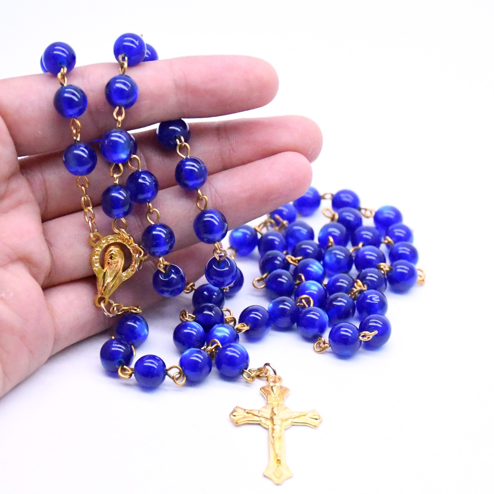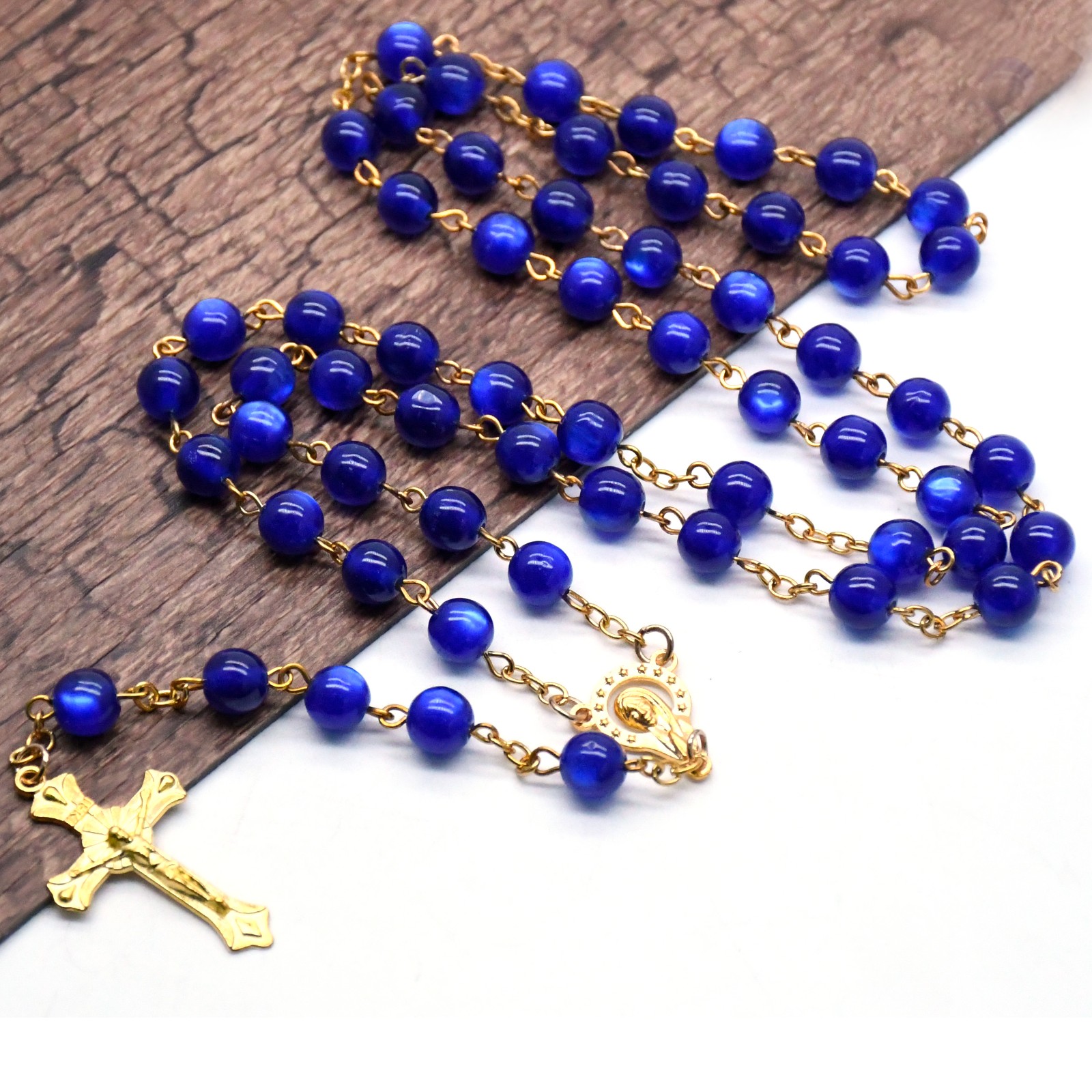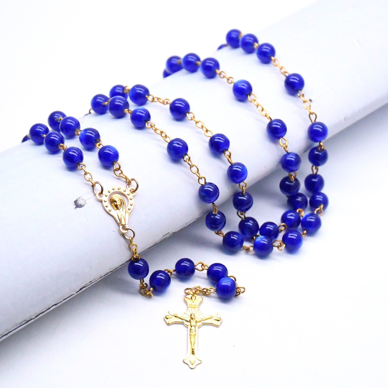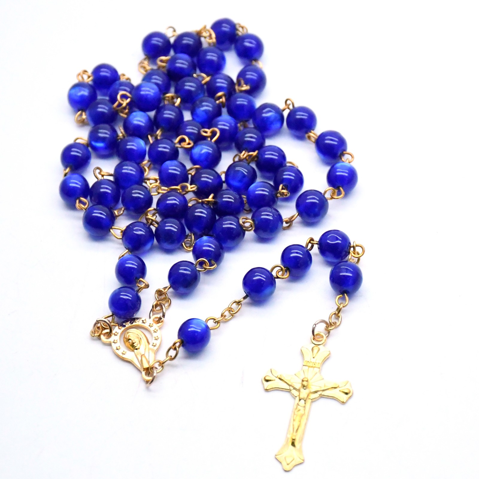 跨境欧美亚马逊宝蓝金色念珠项链十字架祈祷用品礼品赠品
