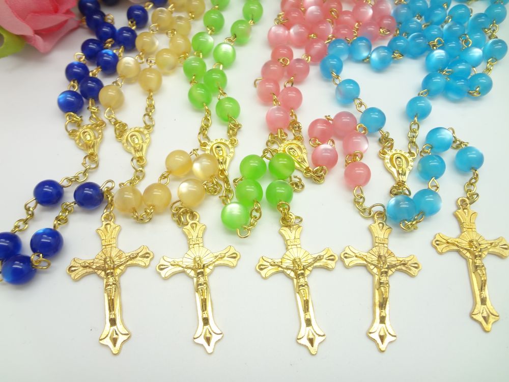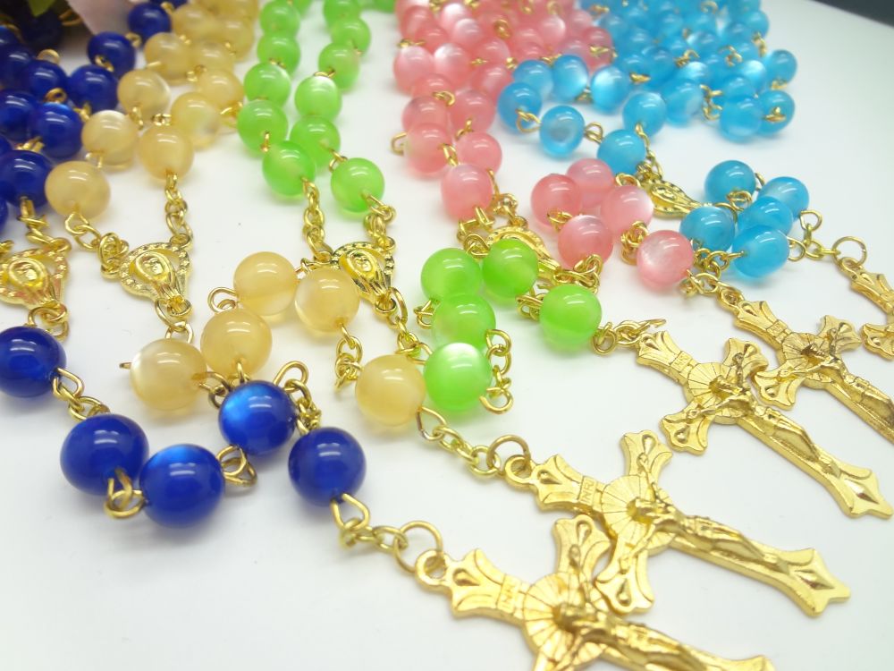 夜光十字架项链连线珠 塑料发光念珠项链(颜色随机,按12条倍数拍)