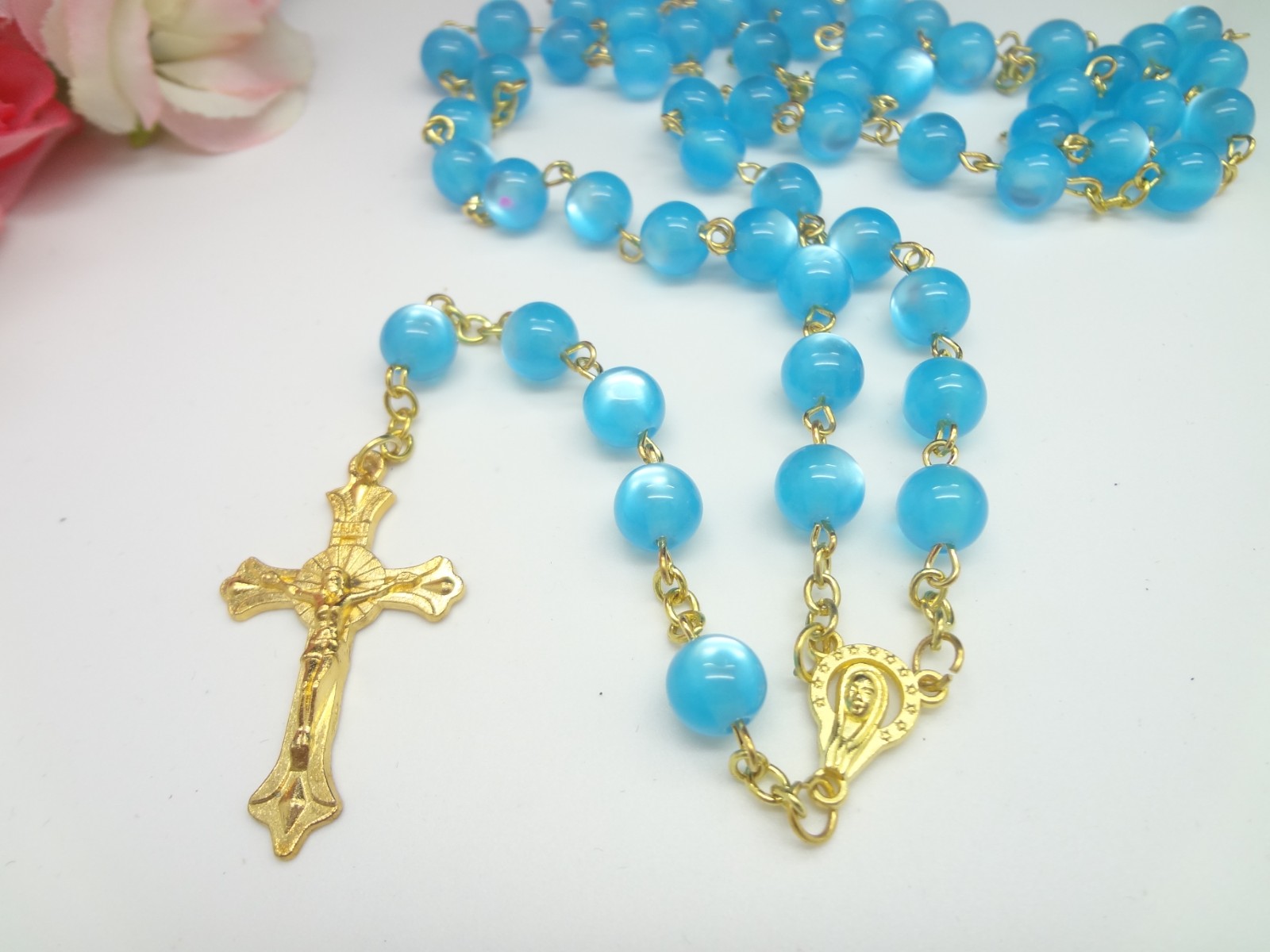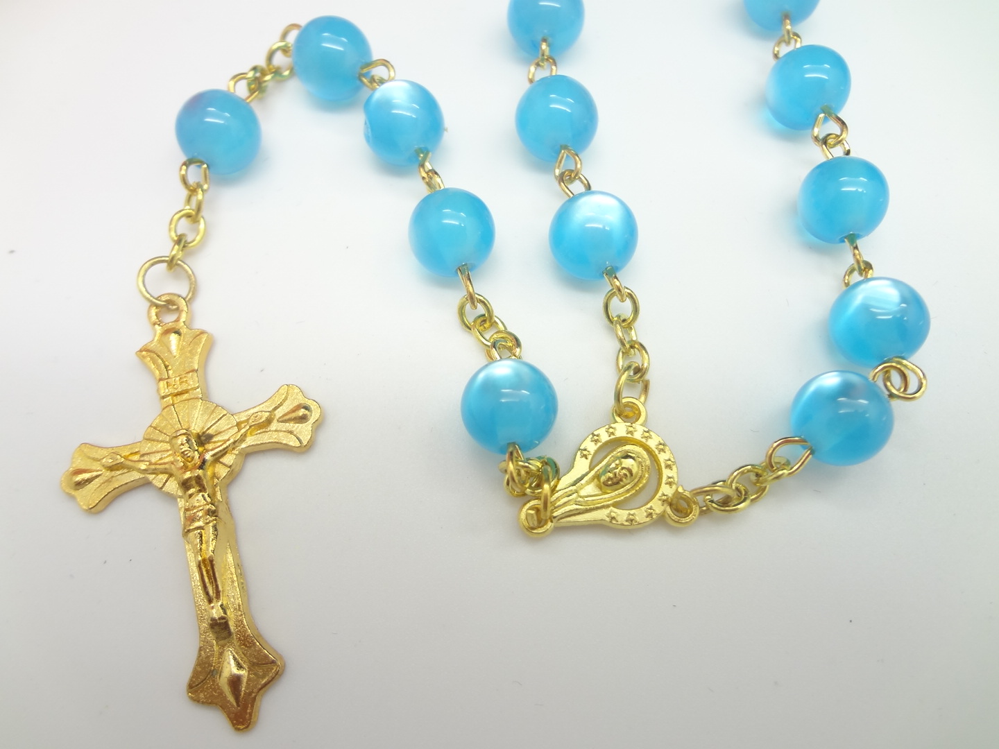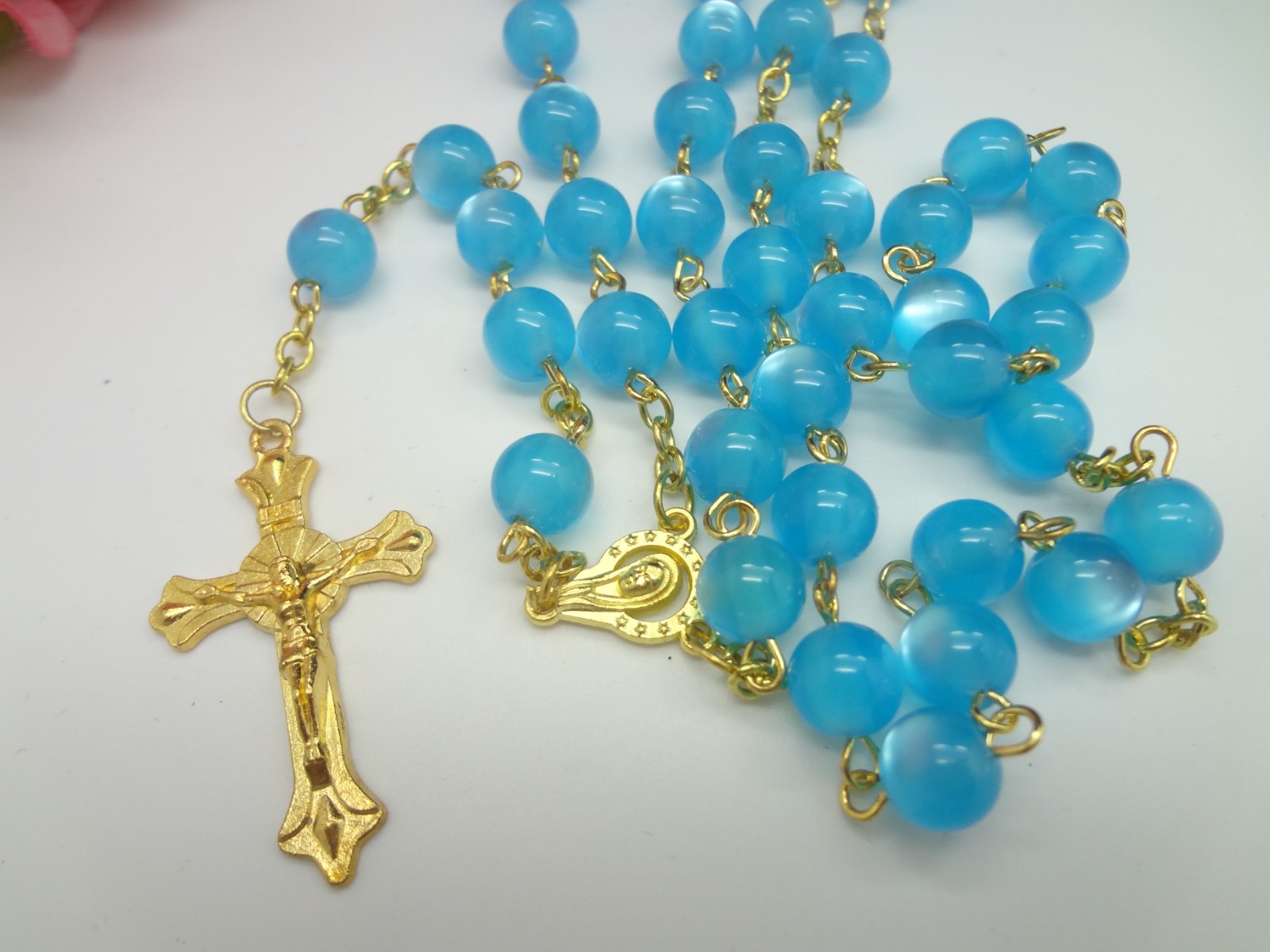 跨境欧美亚马逊宝蓝金色念珠项链十字架祈祷用品礼品赠品