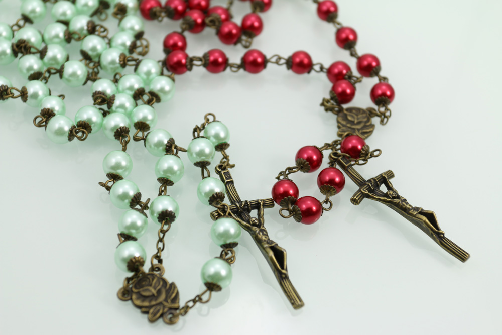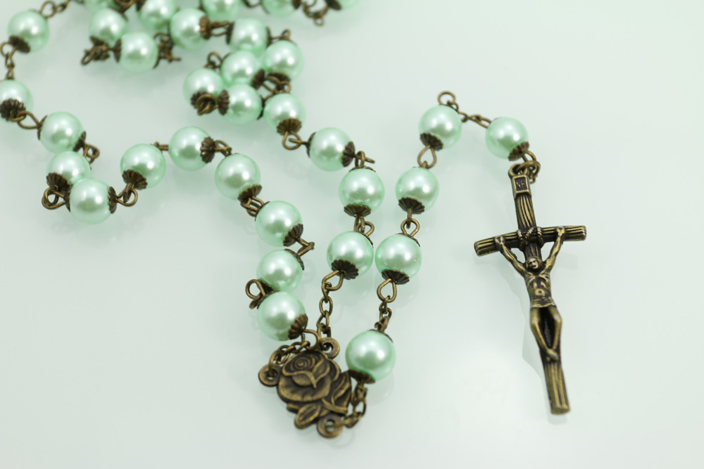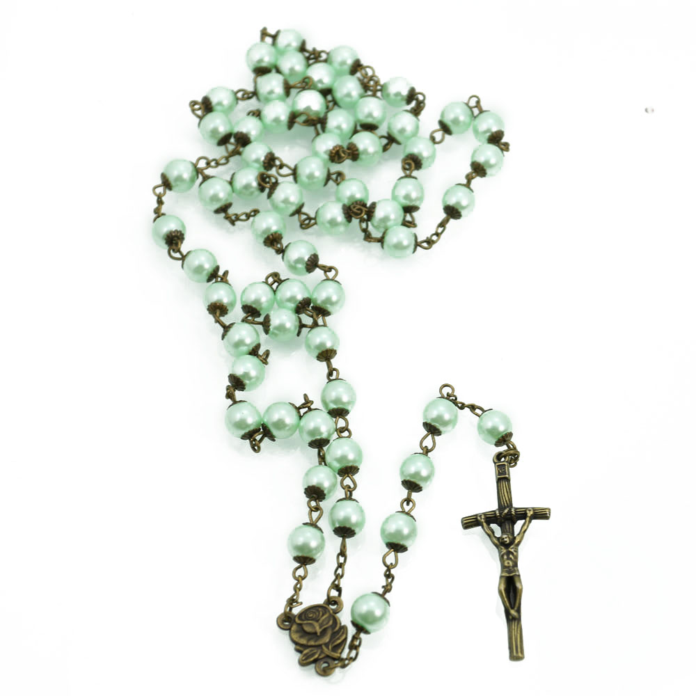(绿色)Rosary念珠饰品项链仿陶瓷珠十字架项链手工串珠