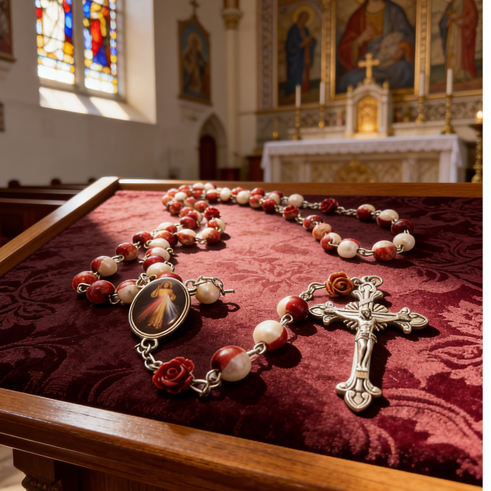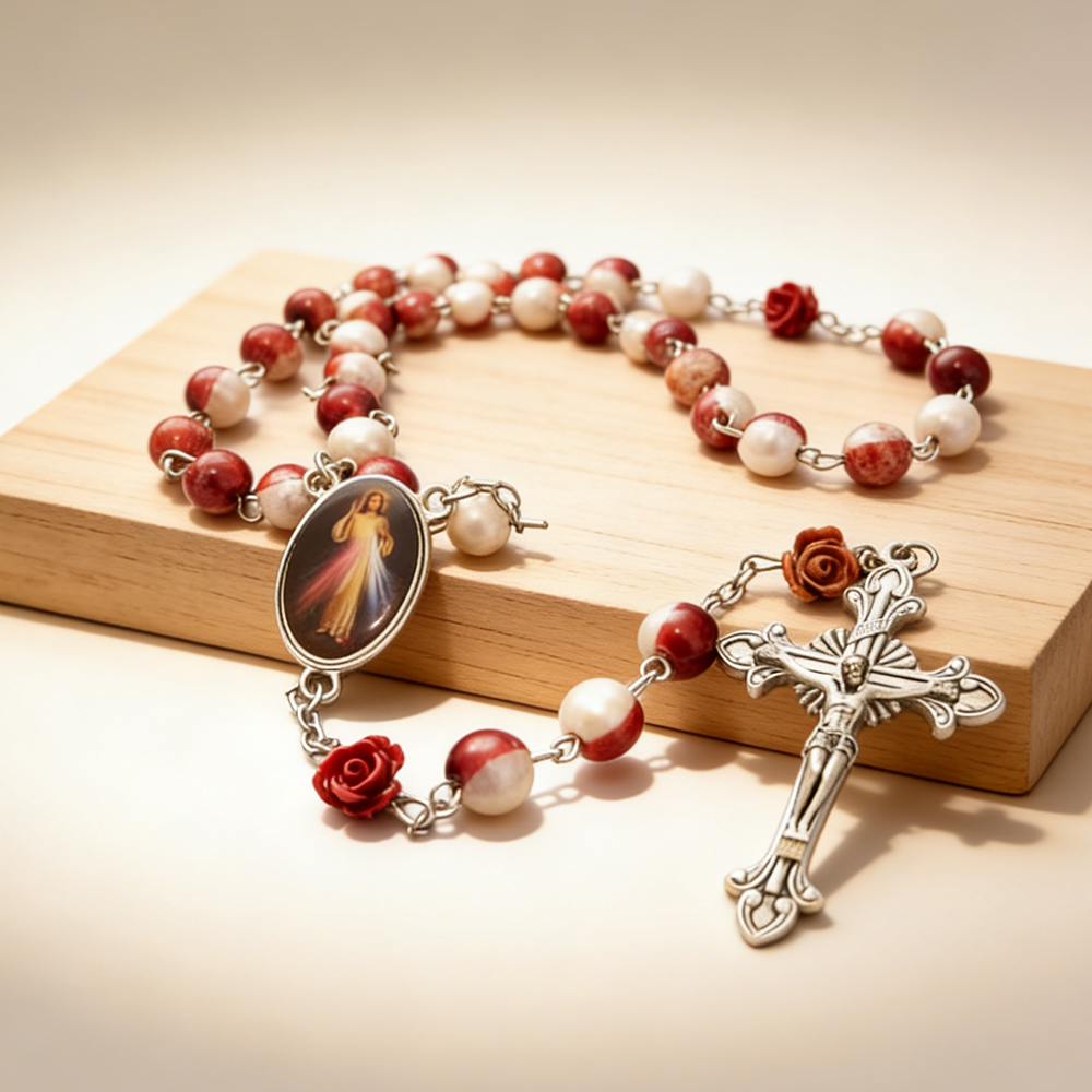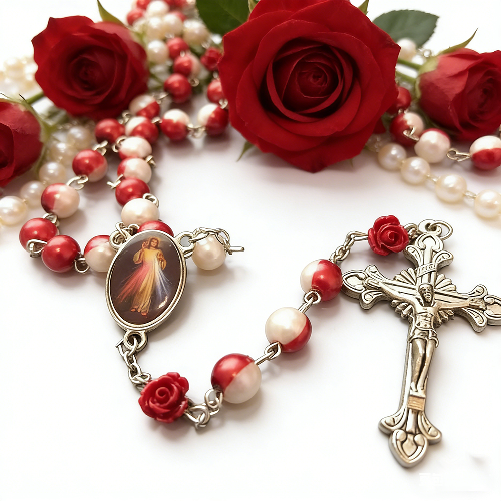 6mm珍珠念珠项链AW十字架西班牙ASTURIAS
