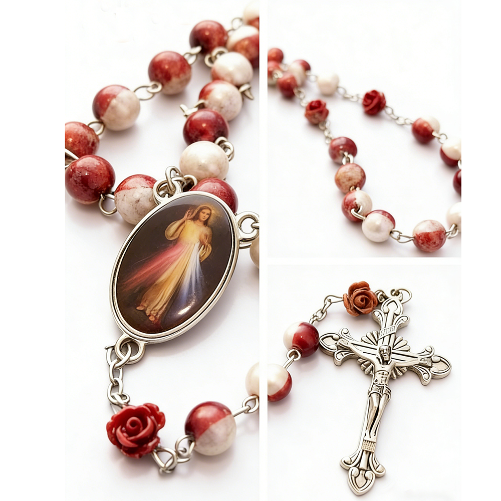 彩色天然石圣本笃十字架念珠项链