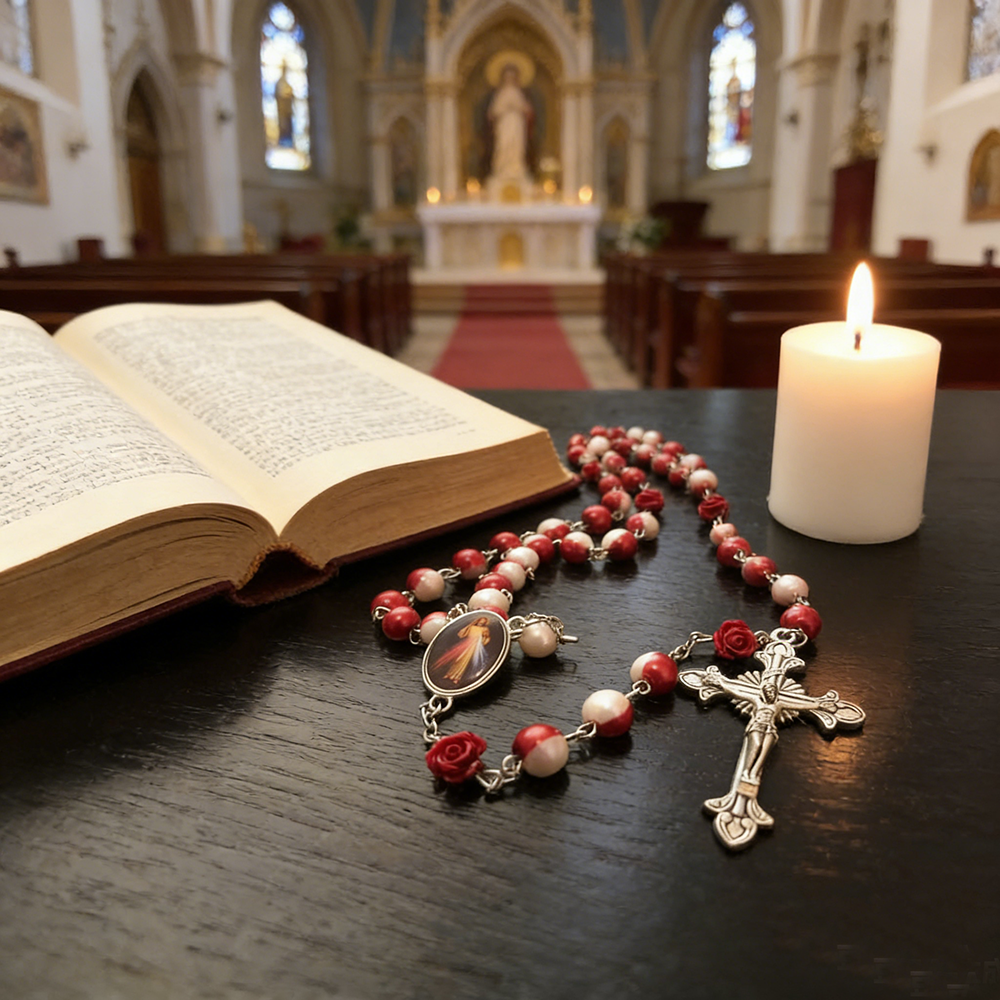 酒红木珠圣本笃念珠项链项链十字架饰品