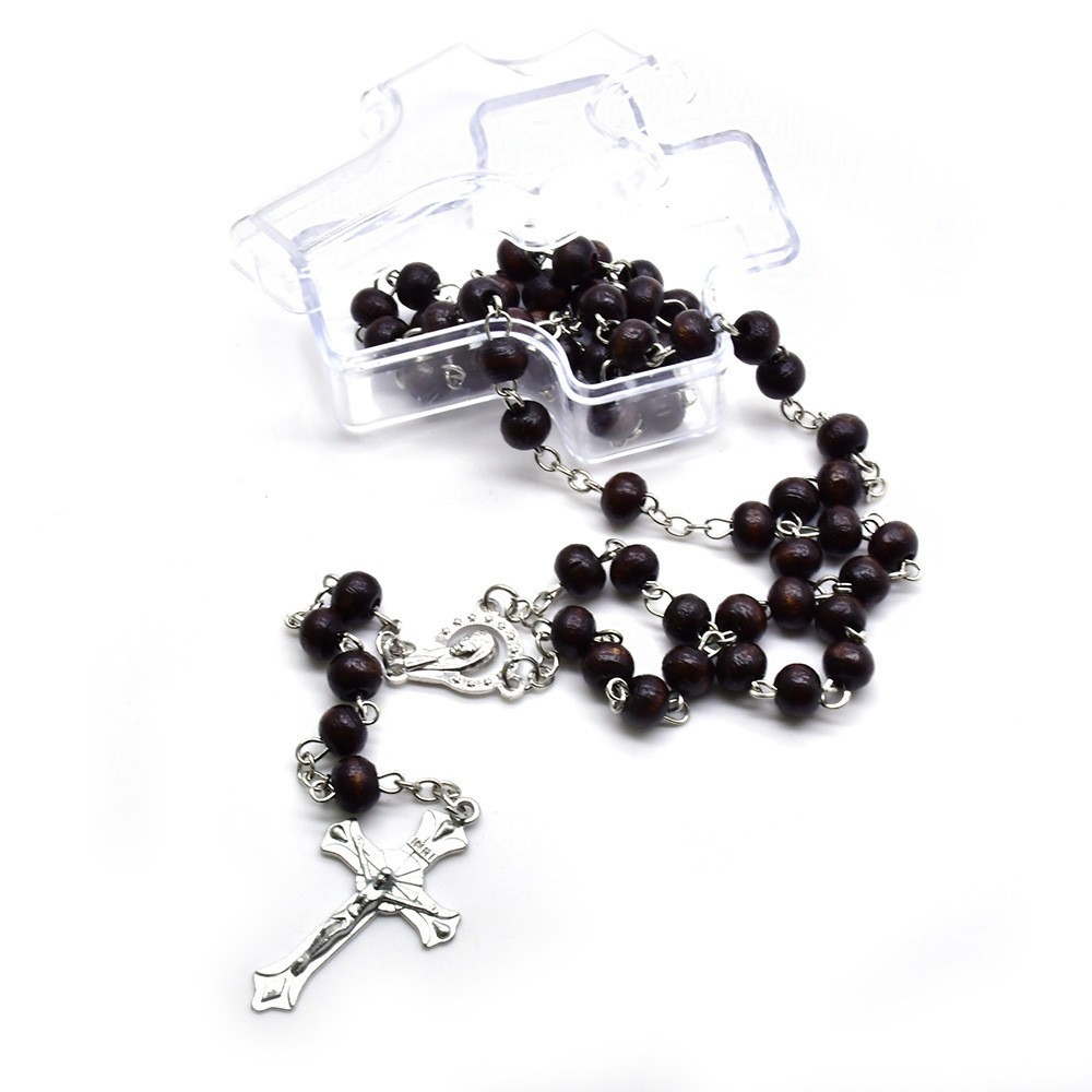黑色棕色木珠念珠十字架项链手工弯针饰品