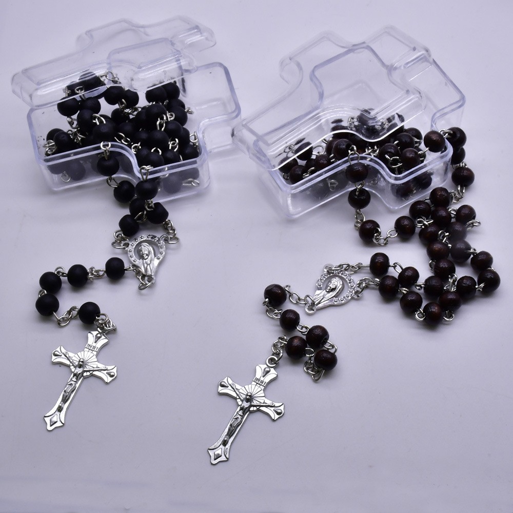 黑色棕色木珠念珠十字架项链手工弯针饰品