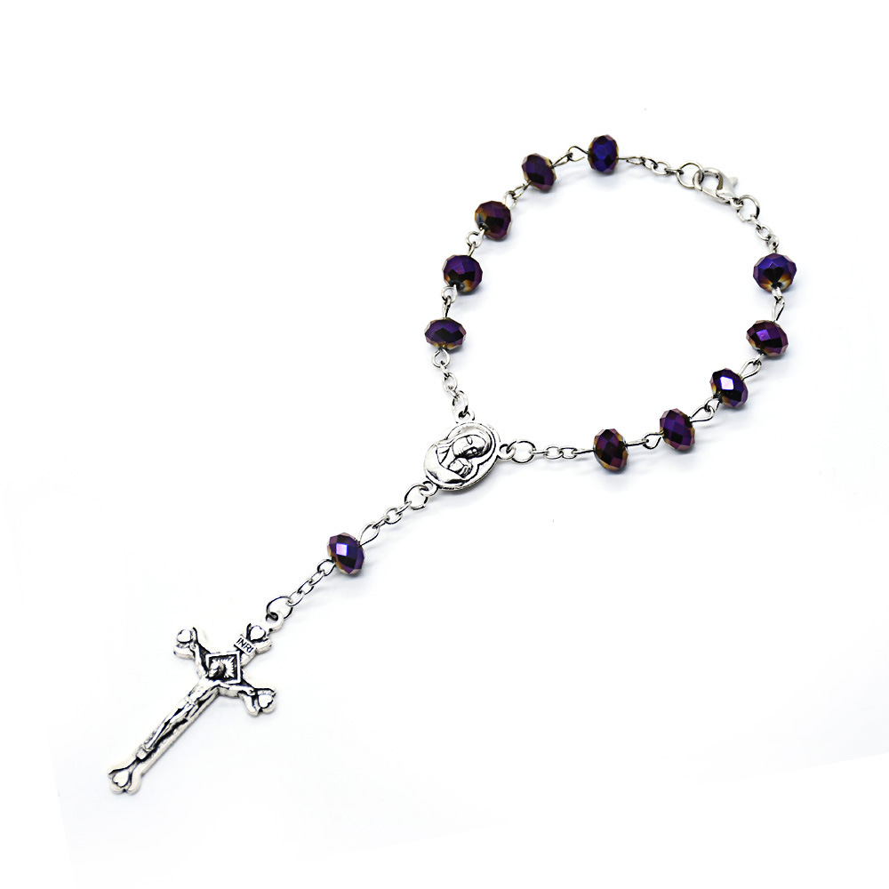 紫光十字架水晶玫瑰念珠手链手串手环弯针Rosary bracelet