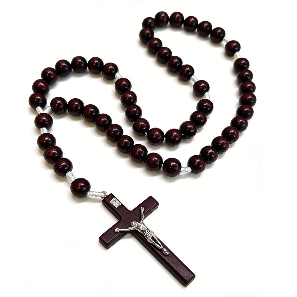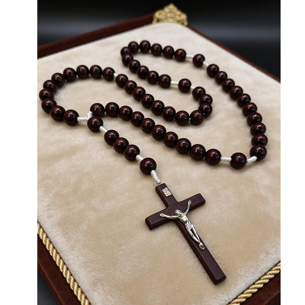 订做生产中 8mm松木珠连接十字架念珠项链饰品