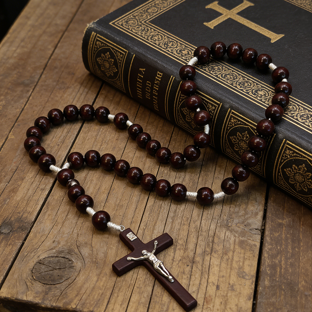 酒红木珠圣本笃念珠项链项链十字架饰品