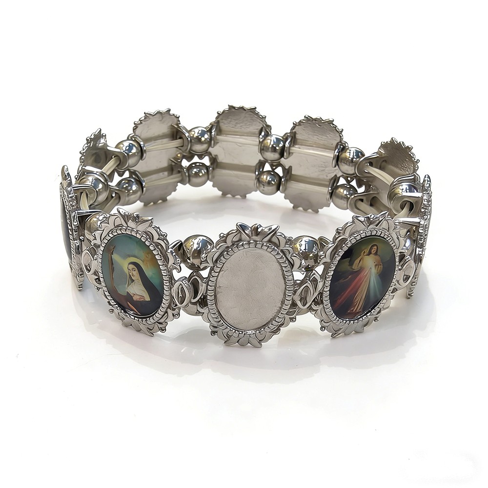 银色)金属手环饰品手链金色合金串珠贴图人像手饰弹力手环