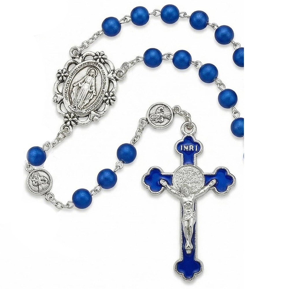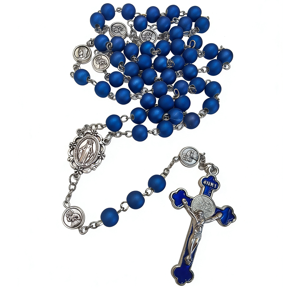 跨境电商圣母宝蓝色念珠项链十字架饰品