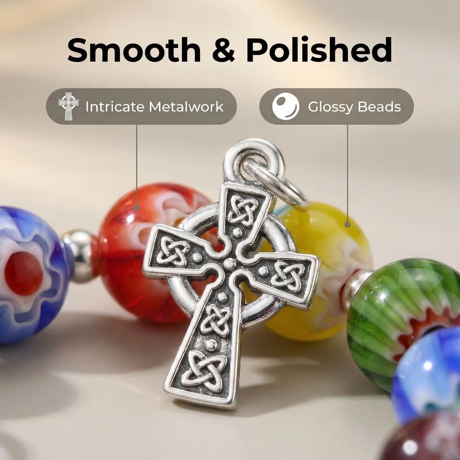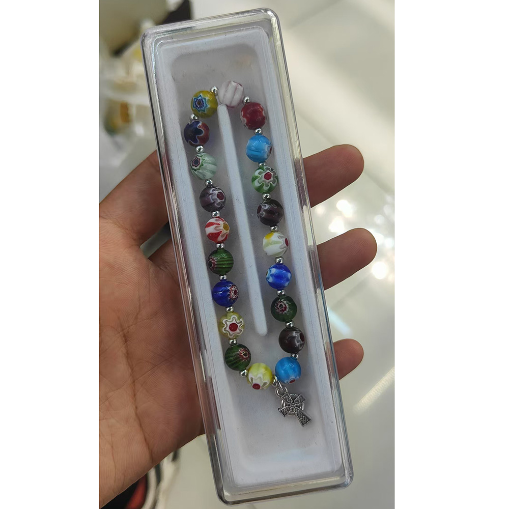 (不带盒)高档千花琉璃珠十字架手链手工弹力绳手串