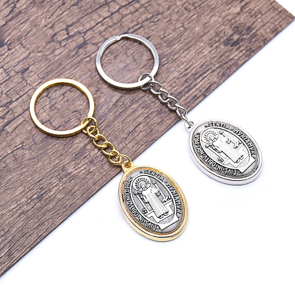 电商外贸椭圆ST. BENEDICT 古银挂件钥匙扣挂饰包挂配饰