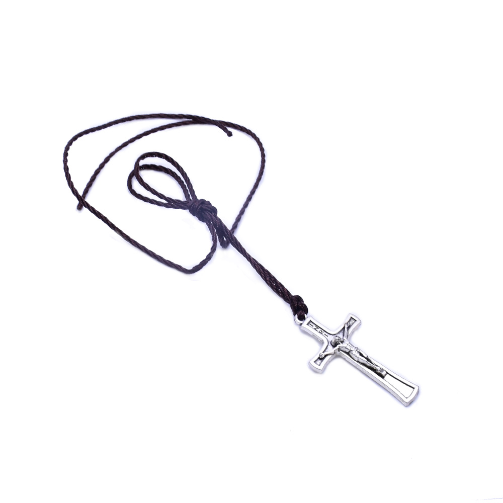 蜡绳金属十字架项链饰品
