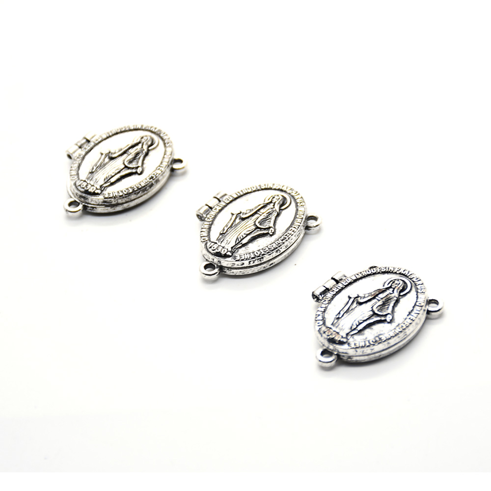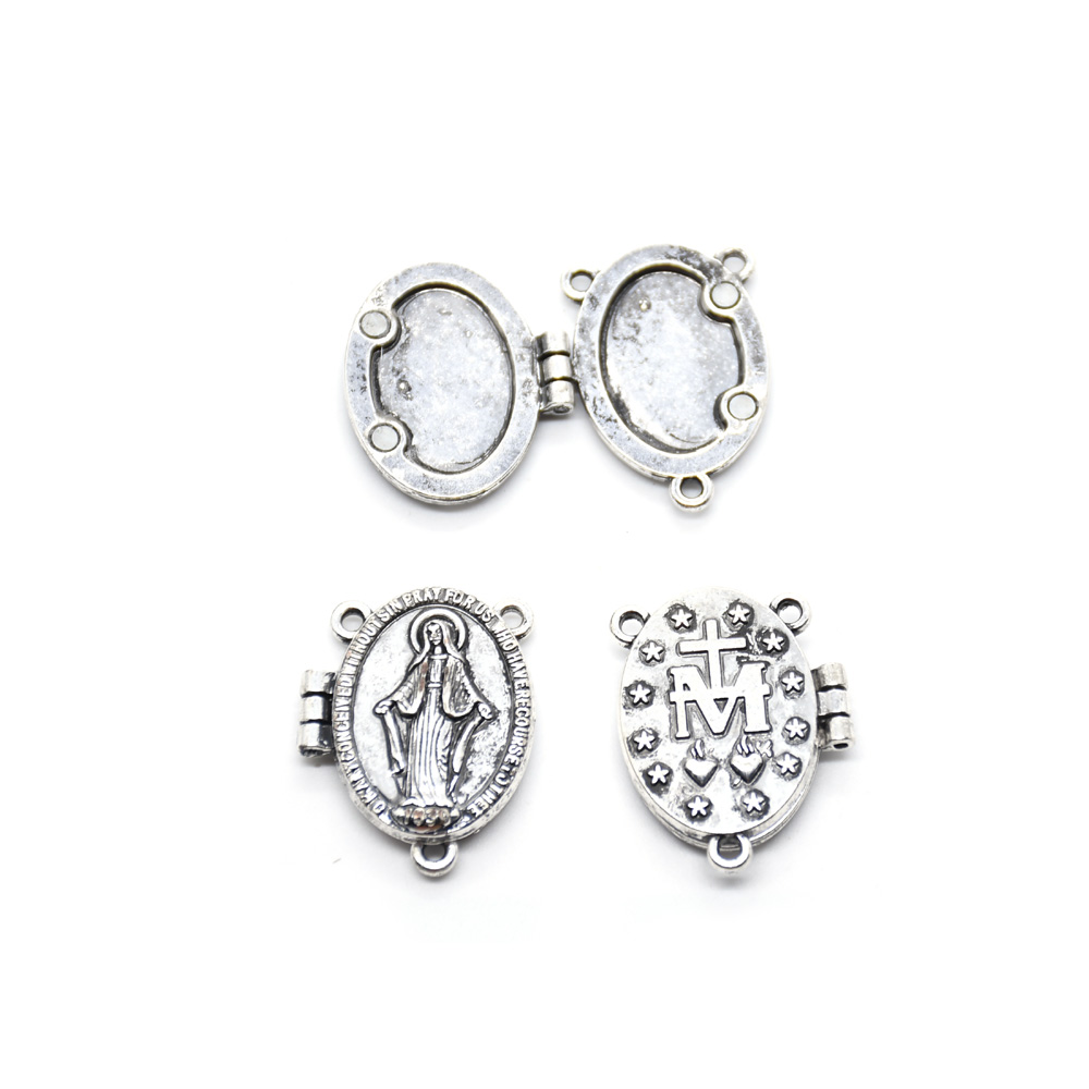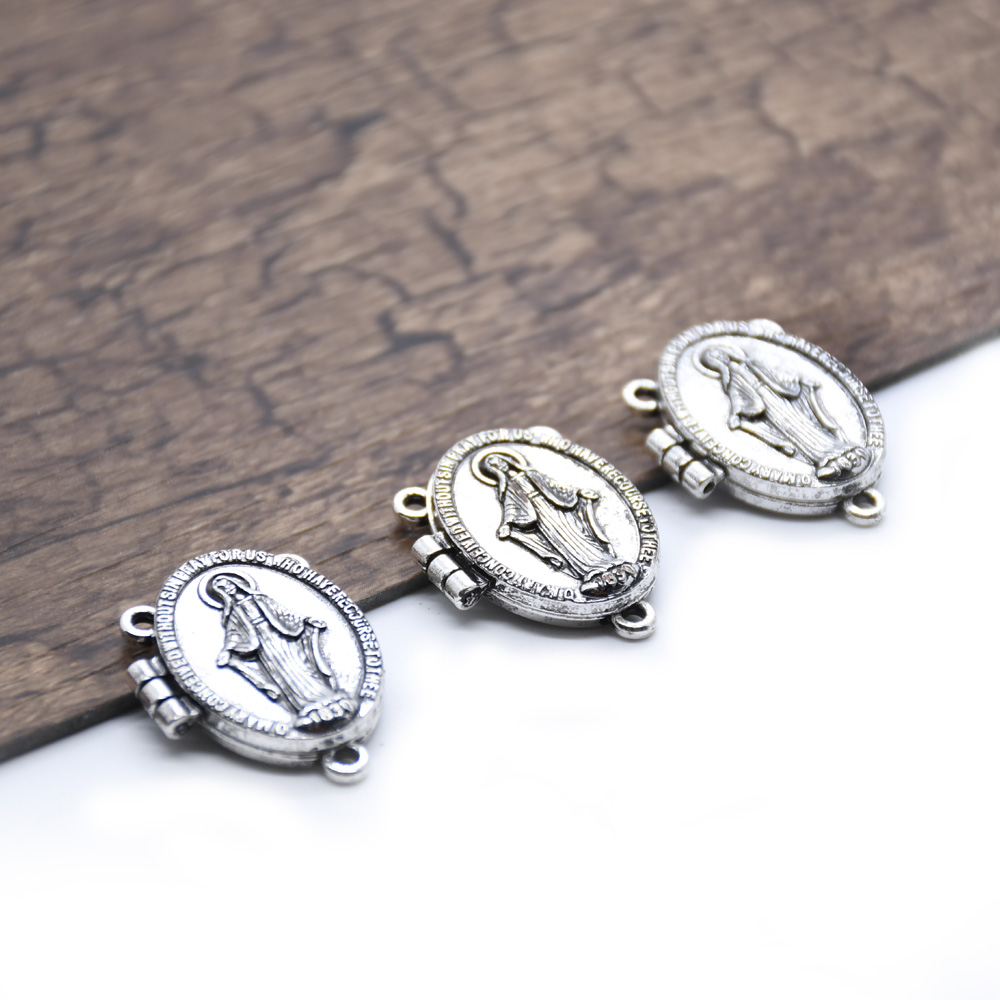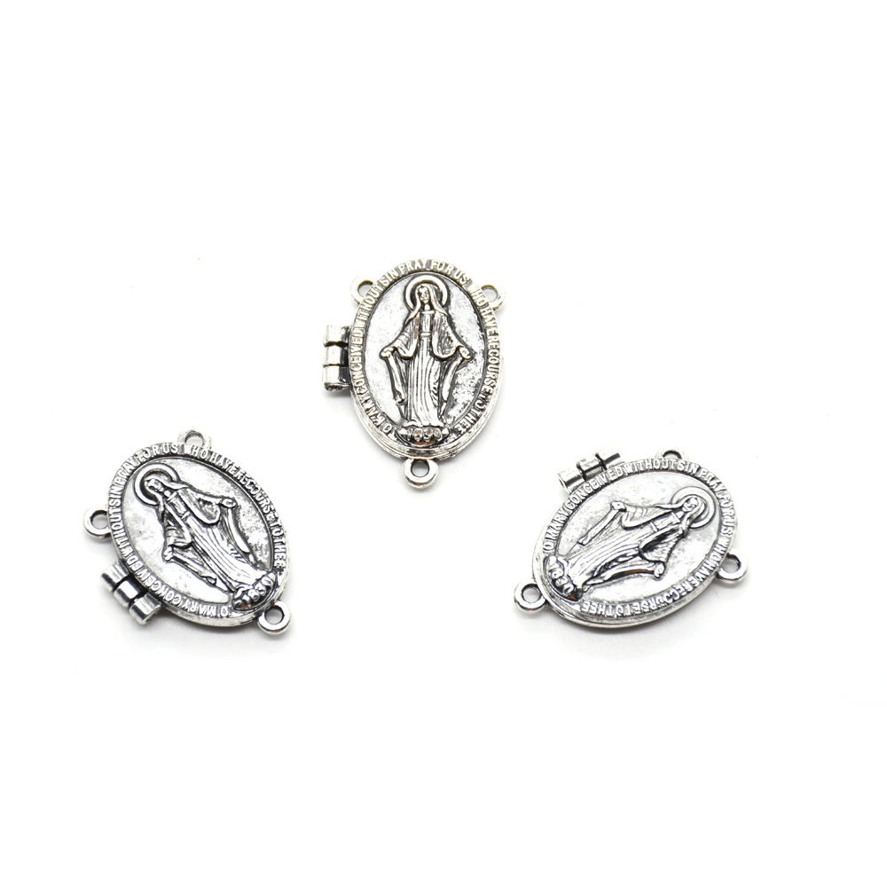 复古银圣母圣父苦像十字架吊坠