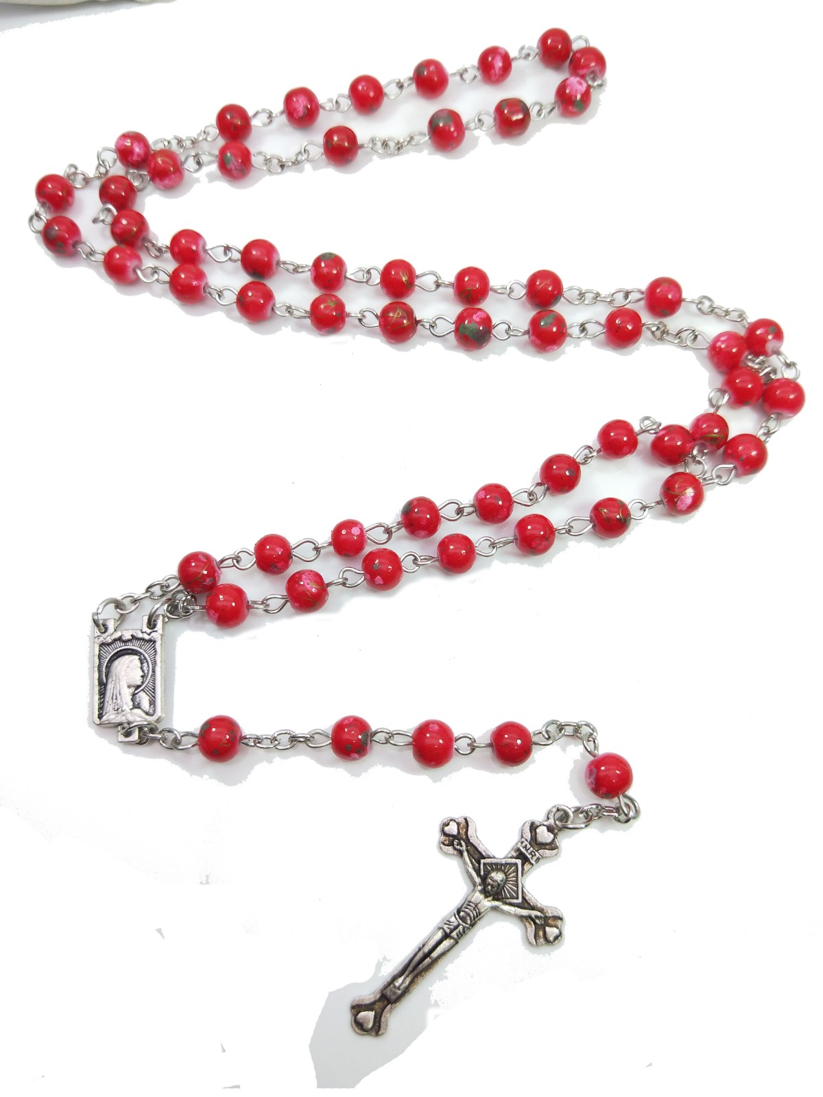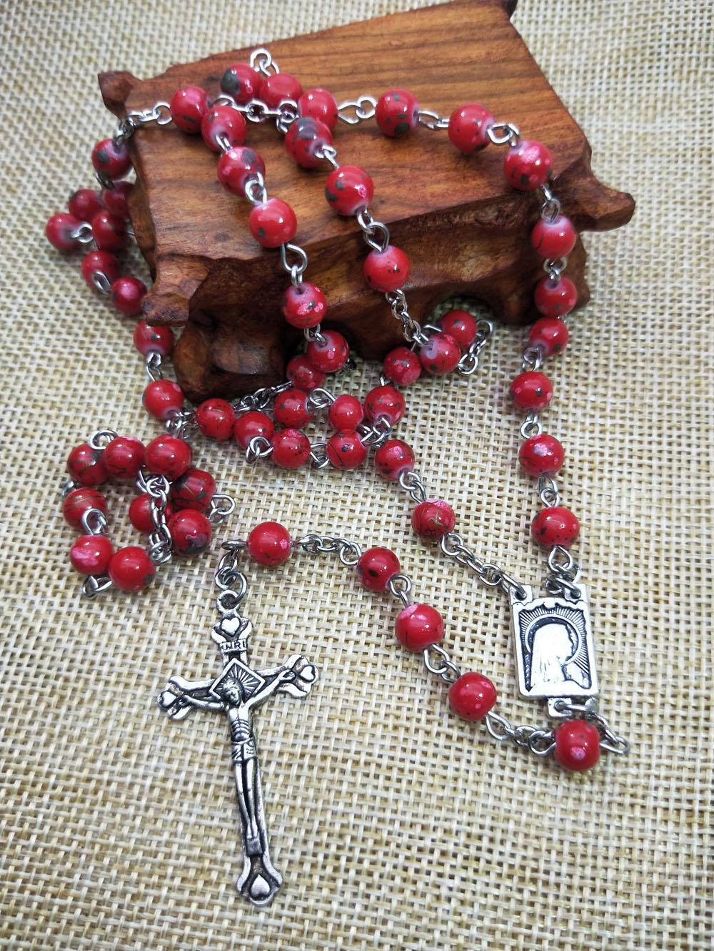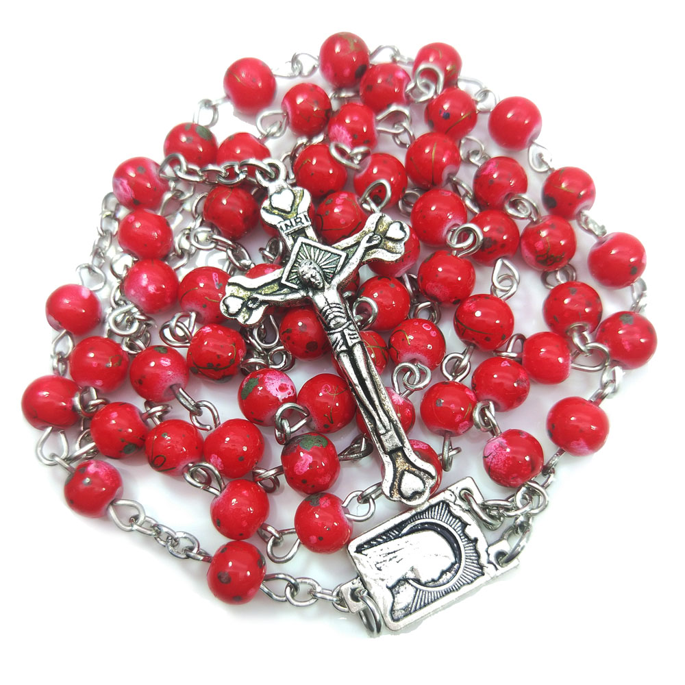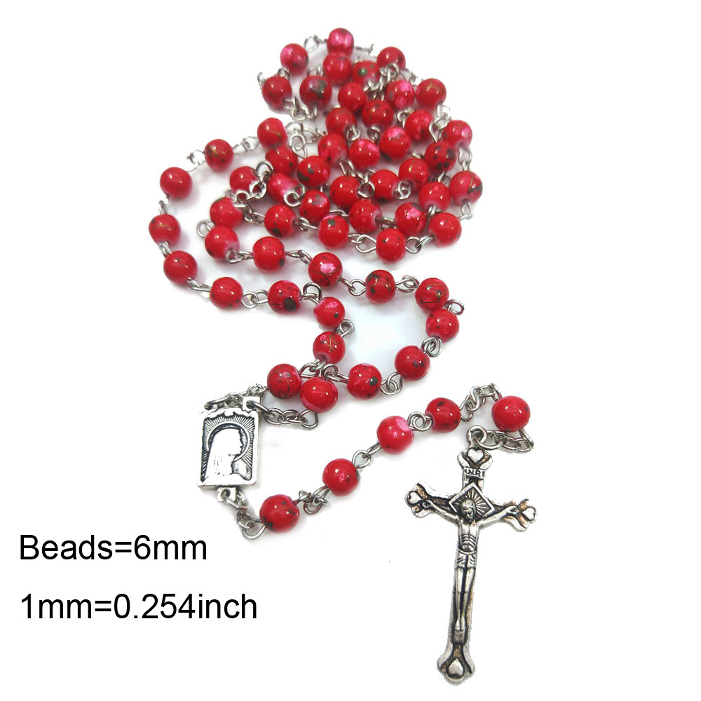 十字架念珠项链红珠玫瑰经用品Rosary 27.5g
